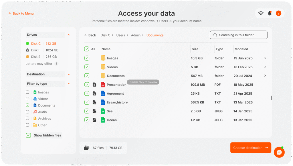 This helps you quickly locate the most important data instead of scrolling through every folder.